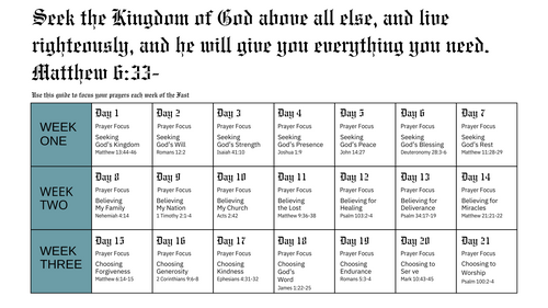 21 Day Fast Prayer Calendar